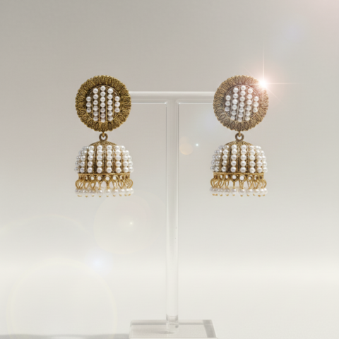Seafoam Pearl & Gilded Sunray Jhumkas