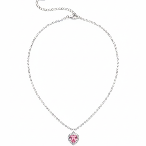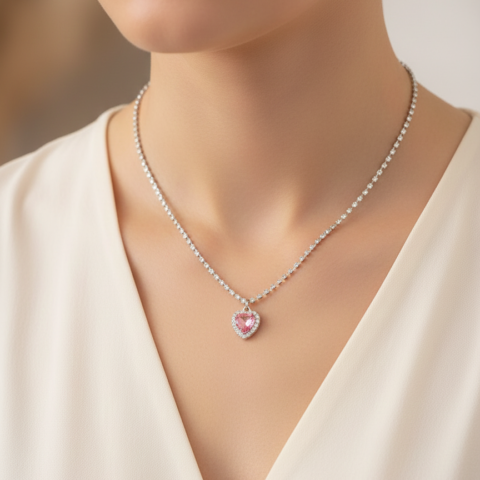 Rosé Dream Heart Halo Tennis Necklace