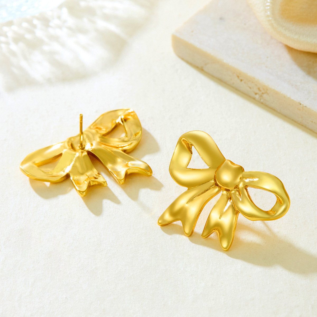 Add a touch of playful elegance to your style with the Anti-Tarnish Bow Knot Earrings. Featuring a stunning gold bow silhouette, these earrings deliver a bold statement while keeping a feminine vibe. Their premium anti-tarnish finish ensures lasting shine and durability, making them perfect for festive occasions, parties, or brightening up everyday looks.