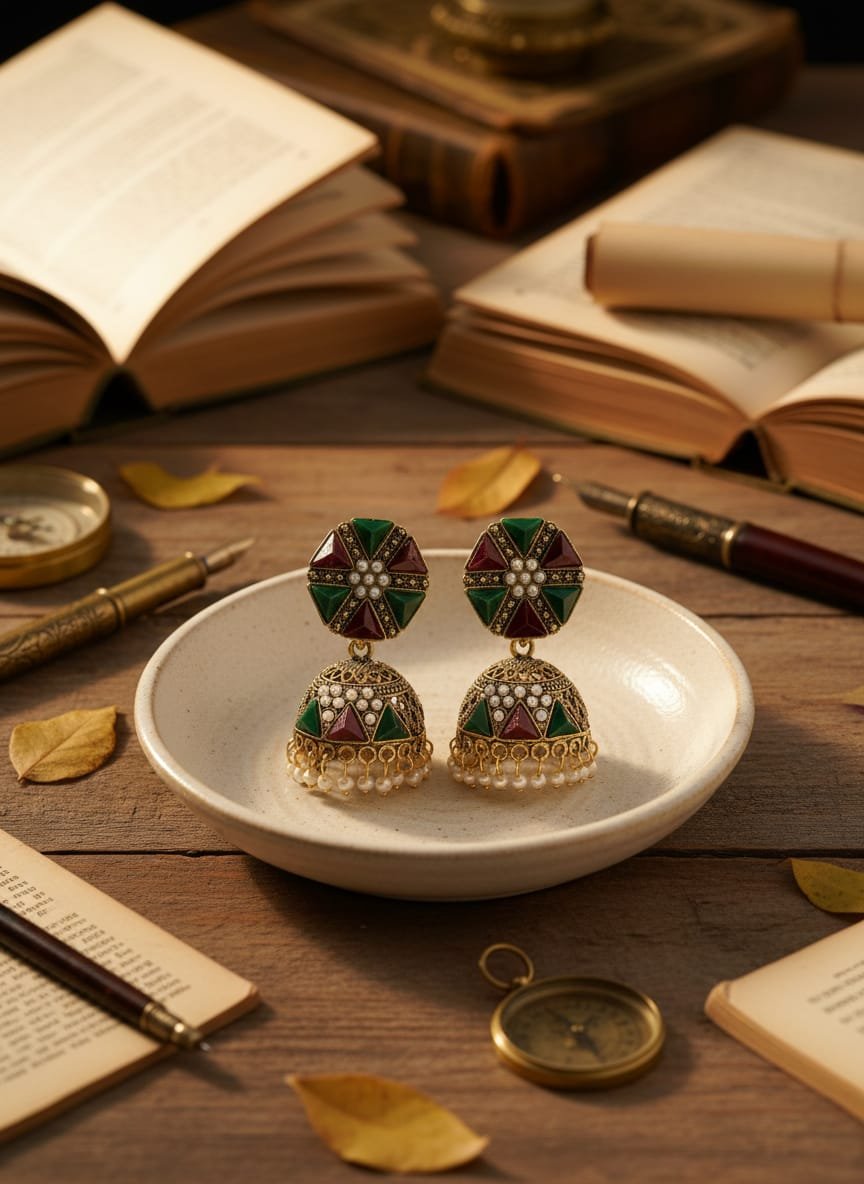 Antique Gold Finish: Crafted in a premium antique gold-toned alloy, these earrings offer a matte, sophisticated luster that highlights the richness of the jewel tones.