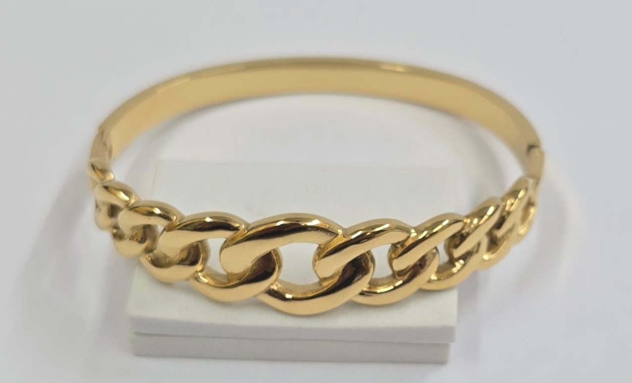 Make a bold statement with the Luxe Gold Chain Link Bracelet—a classic yet trendy accessory that complements every wardrobe. Featuring a solid gold-tone band with a stylish chain link centerpiece, this bracelet is crafted for both elegance and lasting shine. Perfect for stacking or wearing solo, it’s a must-have for anyone who loves standout, modern jewelry.