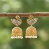 These earrings are a striking departure from traditional styles, offering a geometric and modern interpretation of the classic jhumka.