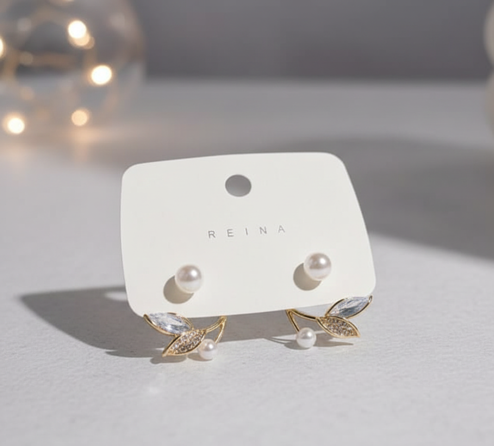 Petite Pearl Studs: The primary component is a classic, high-luster white pearl stud that can be worn alone for a minimalist, timeless look.