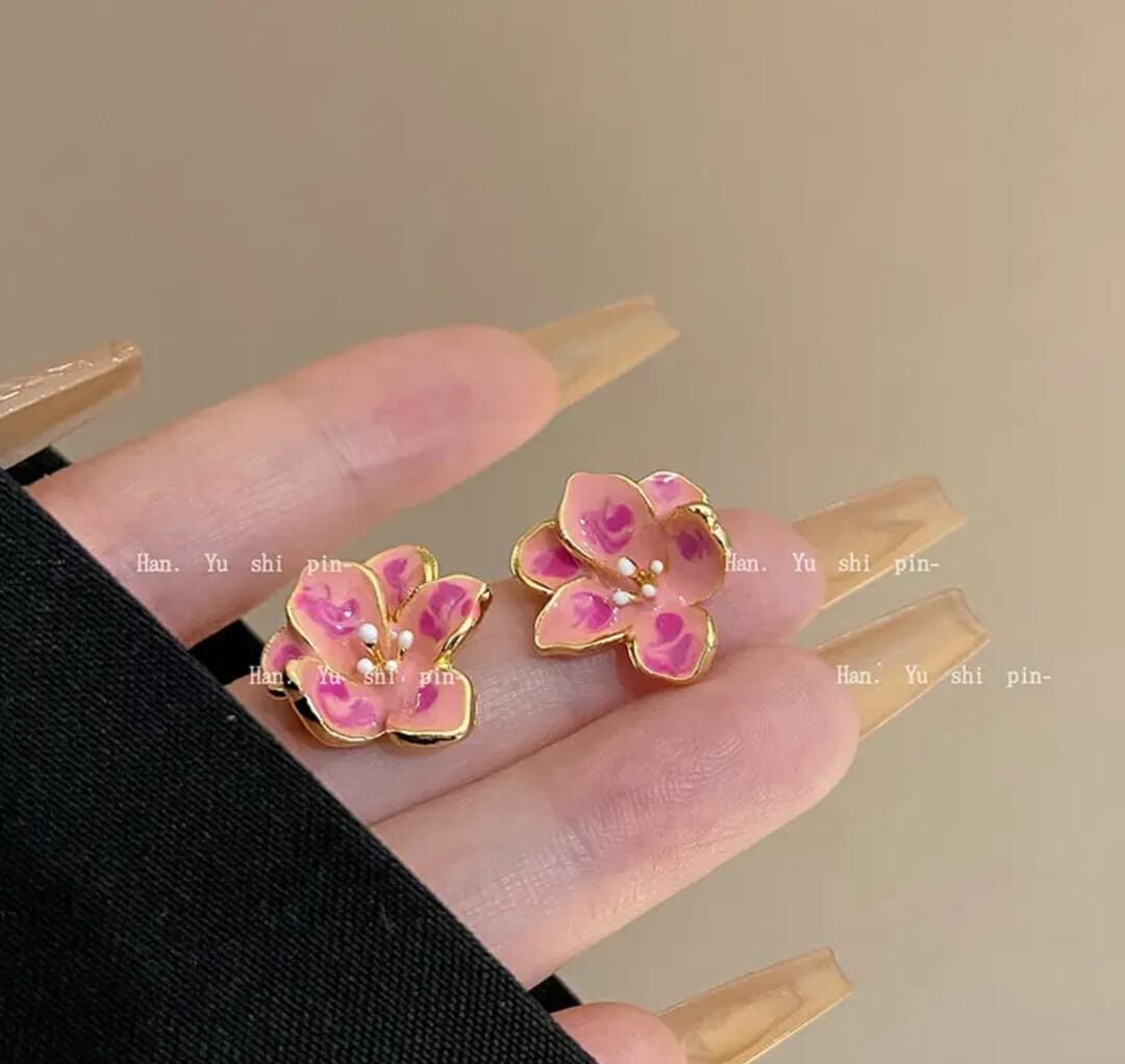 Pink Floral Enamel Stud