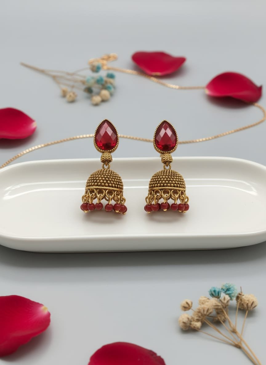Adorn yourself with the timeless beauty of our Scarlet Royale Teardrop Jhumkas.